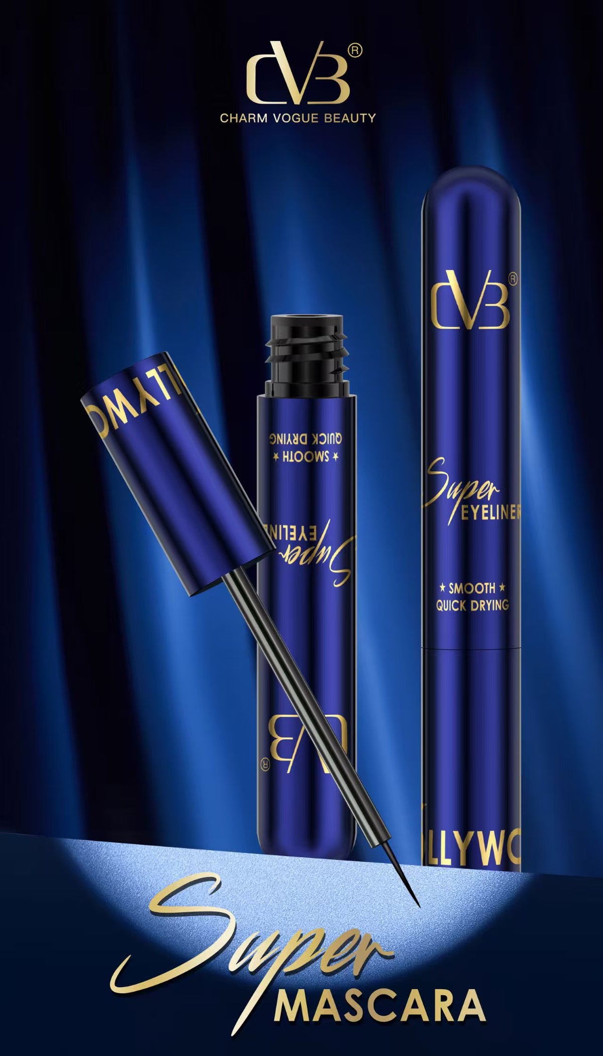 It appears that CVB Cosmetics does not offer a product specifically named "Super Eyeliner Smooth Quick Drying Series Hollywood." However, they do have eyeliners that align with the features you're seeking.