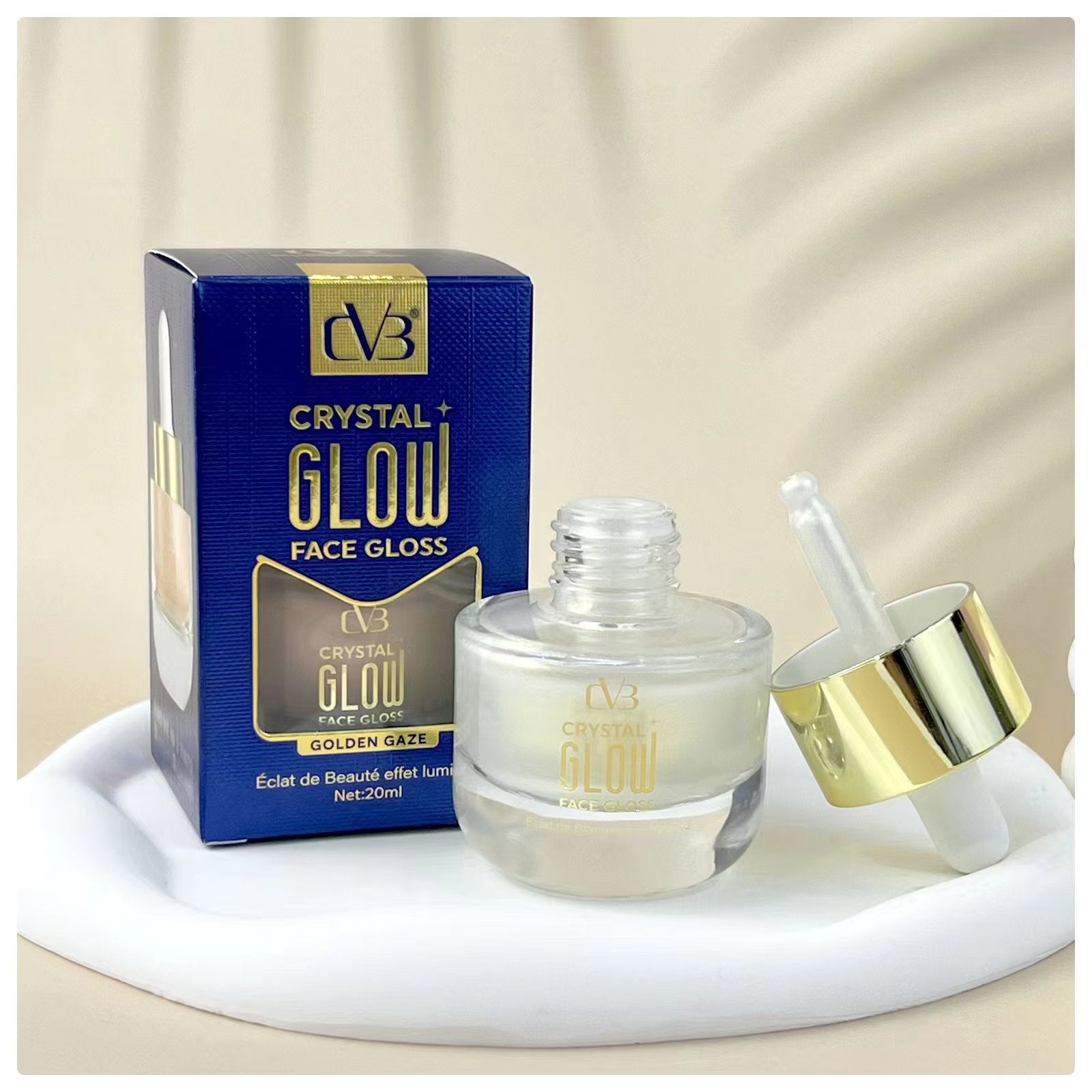 The CVB Crystal Glow Face Gloss Éclat De is a product designed to provide a glossy, radiant finish to the skin, giving it a dewy, glowing look. The description "Find Me in 2 Tints" suggests that this face gloss is available in two different shades or tints, catering to different skin tones or preferences.