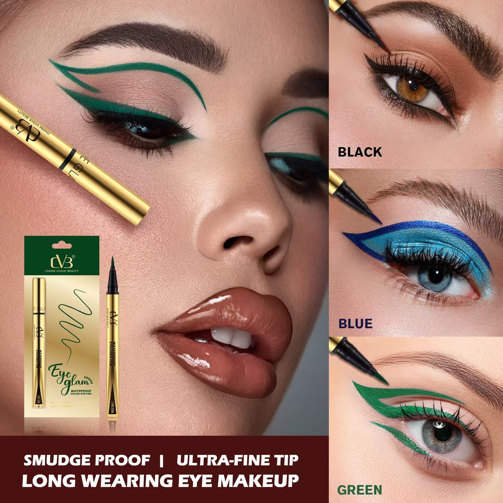 The CVB Eye Glam Waterproof Color Eye Pen is a versatile eyeliner designed to deliver vibrant color with long-lasting wear.