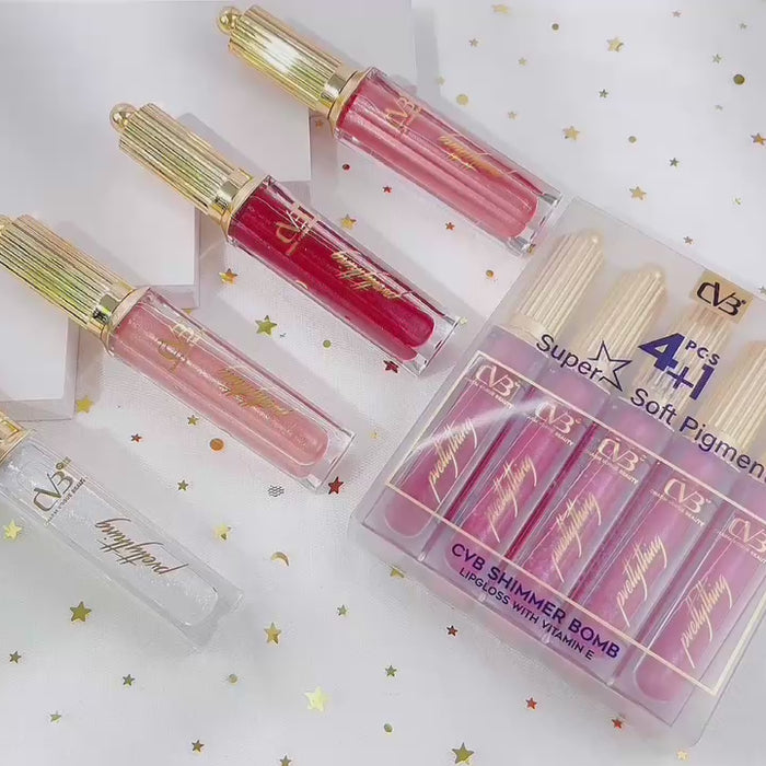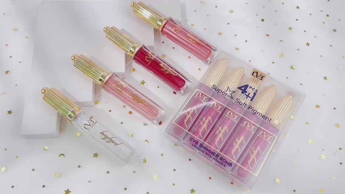 In summary, the CVB Shimmer Bomb Lip Gloss with Vitamin E, Super Soft Pigment, appears to be a lip gloss product that offers high-shine shimmer, hydration with Vitamin E, and rich color payoff with a soft and comfortable texture. This product could be suitable for individuals looking to add sparkle and moisture to their lips with a non-sticky formula.