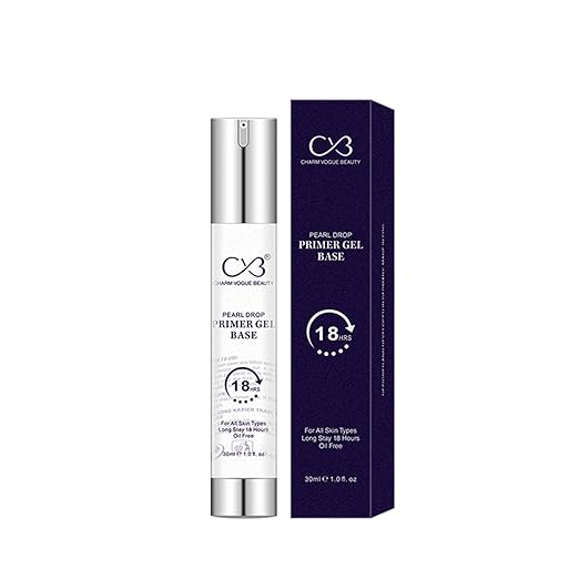 It seems like you're describing a makeup primer called "CVB Primer Gel Base Pearl Drop." Primers are used as a base before applying makeup to create a smooth canvas for foundation and other makeup products, helping them adhere better and last longer.